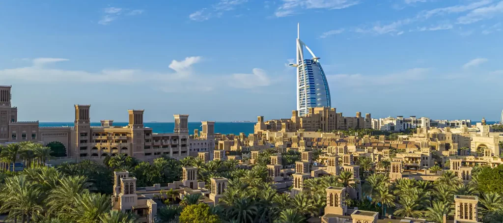 The long-lasting Burj Al Arab peeks above the skyline within the neighbourhood of Jumeirah. | Credit score: Go to Dubai