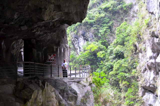 Strolling alongside the Swallow Grotto Path, a brief paved trek by way of a tunnel and alongside the Taroko Gorge