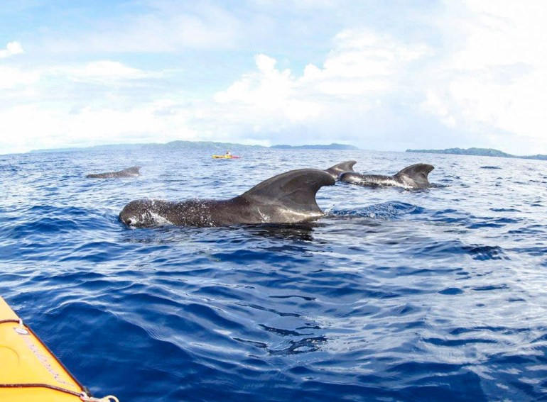 Paddling with pilot whales