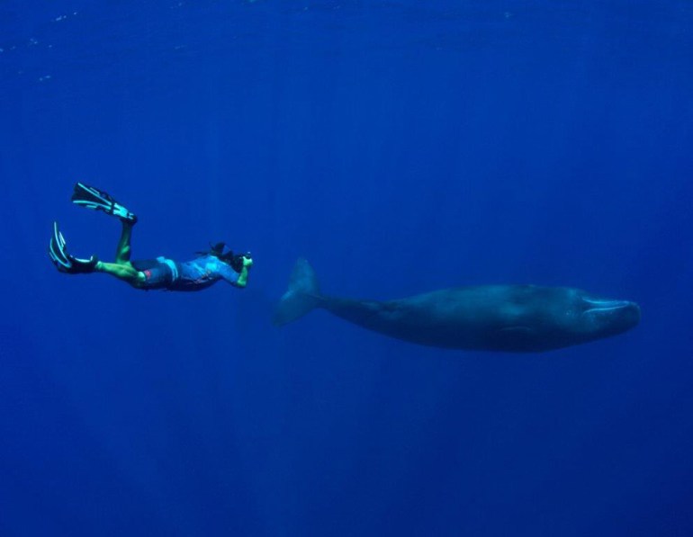 Ron Leidich and a sperm whale. Picture by Thomas Beachtold