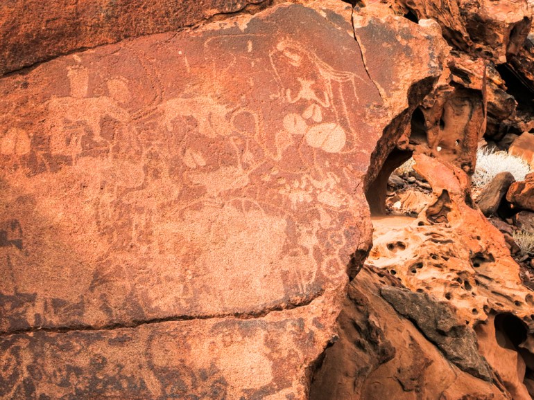 From there it was on to Damaraland to see pink rock and petroglyphs. We additionally noticed a 1200 12 months outdated Welwitschia plant—these vegetation dwell to greater than 2000 years of age.