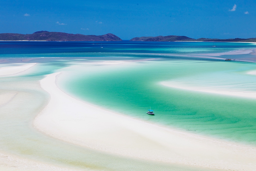 Whitehaven Seaside within the Whitsunday Islands, Queensland, has been repeatedly voted as probably the most stunning seaside on the earth. | Credit score: Tourism Australia