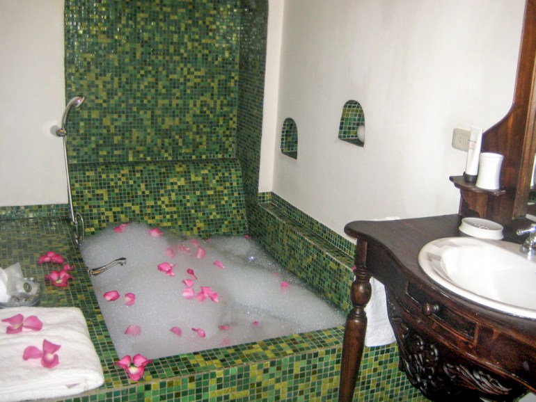 After a very lengthy strolling day, my heels and calf muscle groups have been so sore, and after I returned to my room after a satiating dinner, my bathtub was stuffed with bubbles and rose petals.