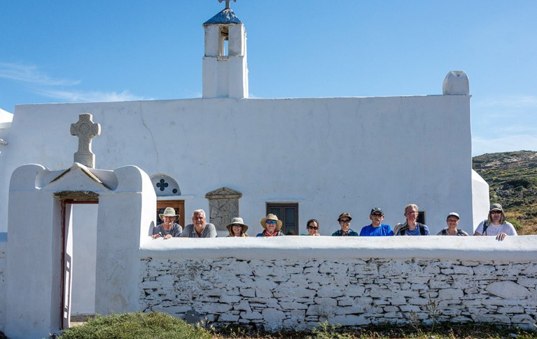 Our opportunity to return to Greece came in May 2017. And who do we run into in the taxi line to get to our hotel in Athens? Our two guides, Kostas and Dimitra! It was a fun reunion from the very beginning as our group of 10 set out with Kostas on our odyssey to the Greek Isles. We visited three islands in the Cyclades—Tinos, Naxos, and Amorgos. What’s wonderful about these islands is that they are “off the beaten path,” with very few other tourists. We hiked through some lovely villages with white-washed buildings, blue-domed churches, and had wonderful lunches and dinners. Kostas loves introducing everyone to a variety of tasty Greek foods, all served family-style so that you can sample it all. And if you like swimming, the Aegean is crystal clear (though it was slightly chilly this May).