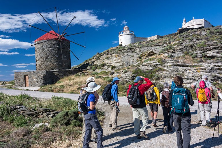 Just starting our morning hike near one of the ancient windmills that can be found throughout the Cyclades.