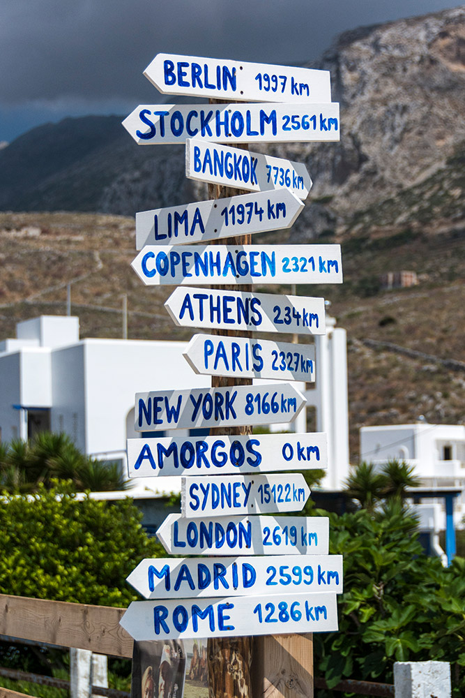 Even on little Amorgos, you are never far from the major capitals of the world!