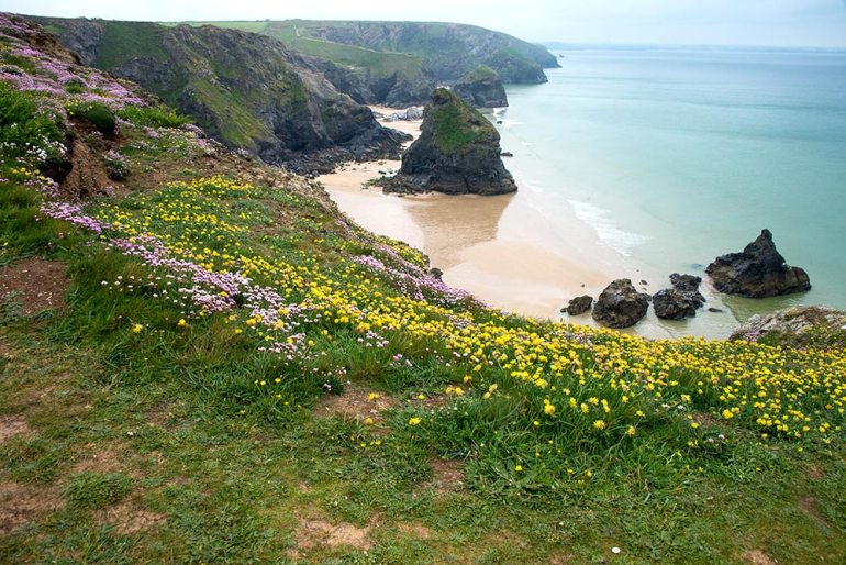Tracing extra of the Celtic Sea, we hiked from Porthcothan Bay to St. Ives with dramatic views from the cliff. A nineteenth century legend says {that a} large Bedruthan used the seashore stacks as stepping stones for a shortcut throughout the bay. You possibly can see them completely positioned within the sea like a row of dominos. We had lunch at Jamie Oliver’s scrumptious restaurant, Fifteen, that overlooks Watergate Bay.